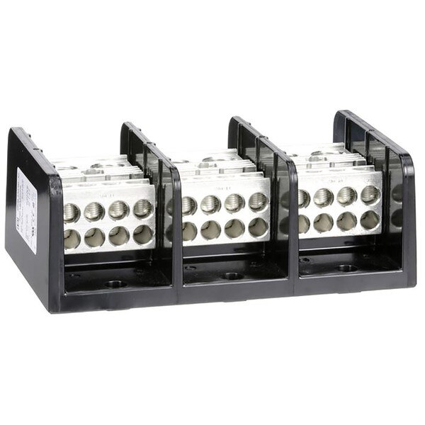 Power distribution block used in the Motor Control Panels in the backroom of the wash tunnel. This distribution block has a 600 VAC voltage rating and 760 A current rating. It has a 3-pole design and 2-line terminals per pole.